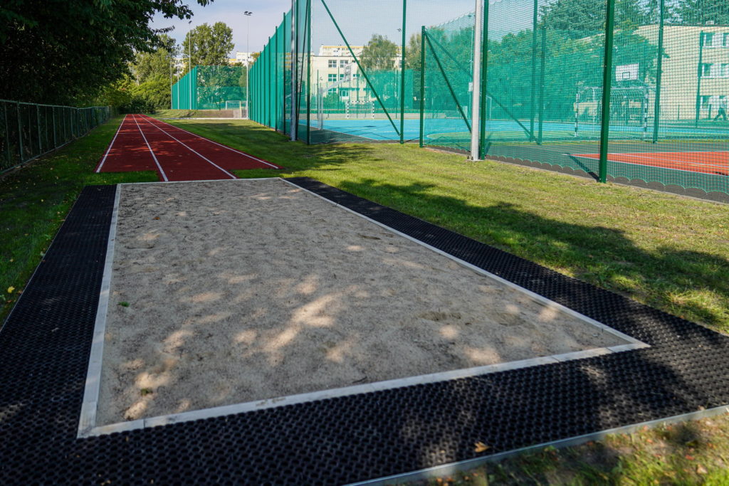 - 100-metrową tartanową bieżnię ze skocznią w dal,