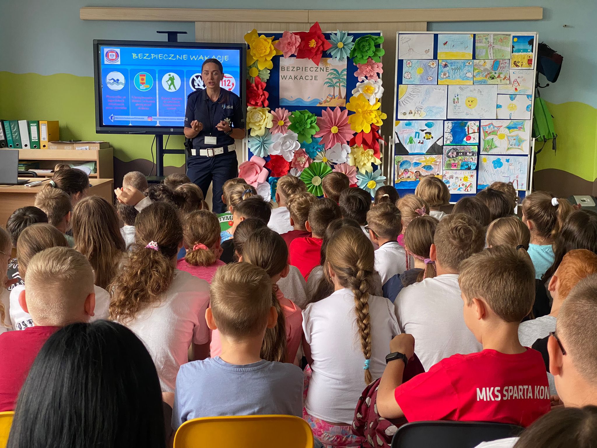 Tuż przed wakacjami funkcjonariusze Komendy Miejskiej Policji w Koninie spotkali się z uczniami Szkoły Podstawowej nr 11, by porozmawiać o zasadach bezpiecznego spędzania wolnego czasu. Spotkanie miało charakter profilaktyczny i odbyło się w atmosferze otwartego dialogu.
