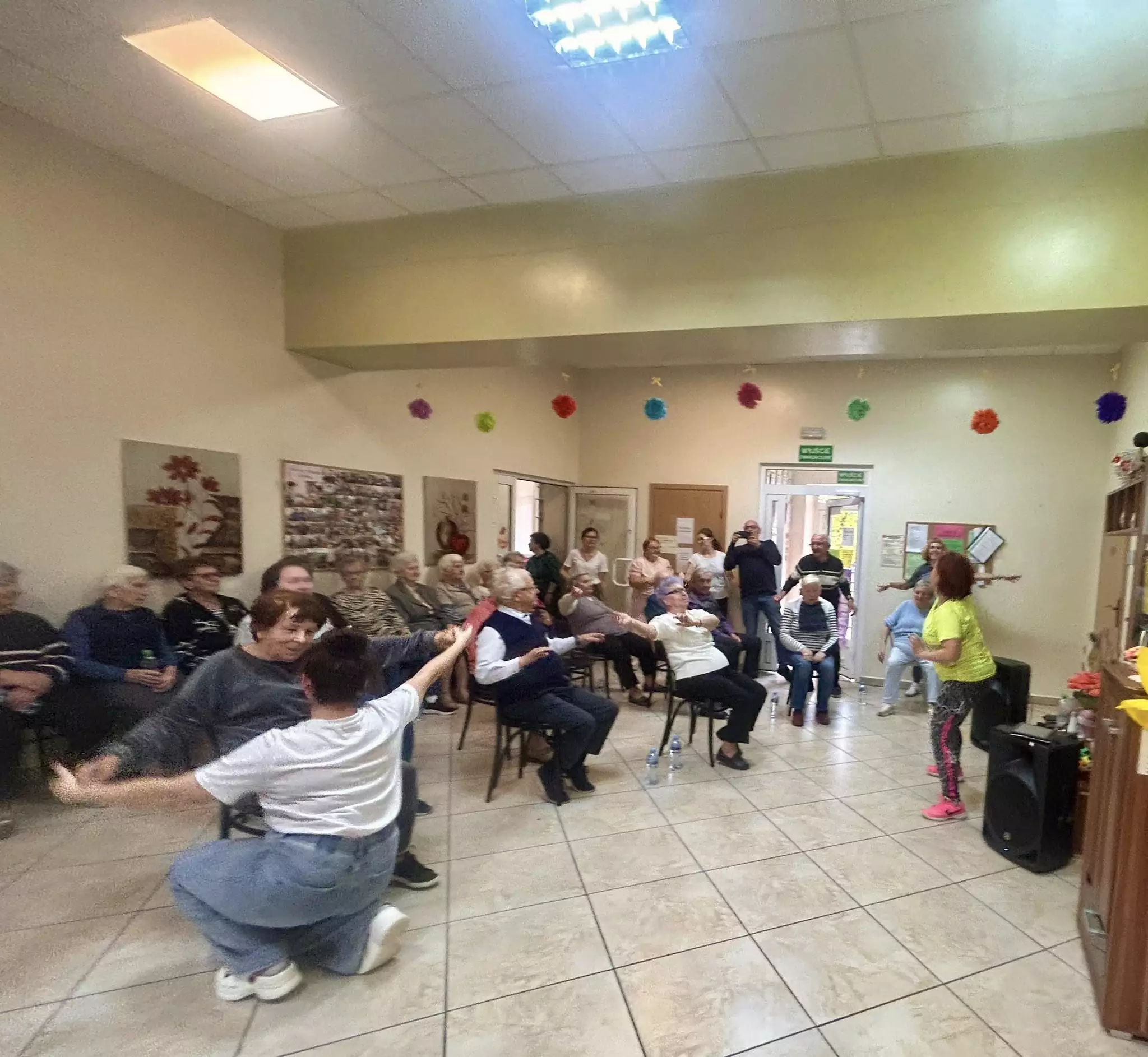 Uczestnicy wzięli udział w zajęciach ZUMBY, które były pełne energii, śmiechu i radości. Taniec stał się pretekstem do wspólnej zabawy, wymiany doświadczeń i zacieśniania relacji między młodszym a starszym pokoleniem. Program „Olimpiada Pokoleń” obejmował również warsztaty kulinarne, rywalizacje sportowe oraz inne aktywności sprzyjające integracji.