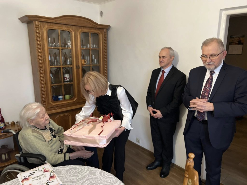 Pani Sabina całe swoje życie związała z Borkami, gdzie wspólnie z mężem wybudowała rodzinny dom oraz prowadziła gospodarstwo. Przez dekady jej wielką miłością był ogród, który słynął w okolicy z przepięknych narcyzów, tulipanów oraz dumnych mieczyków. Choć dziś seniorka cieszy się zasłużonym odpoczynkiem, pozostaje filarem ogromnej rodziny, obejmującej 3 córki, 5 wnucząt, 11 prawnucząt oraz 2 praprawnuków. Z okazji tak pięknego święta, wójt Andrzej Nowak złożył jubilatce życzenia niegasnącej pogody ducha oraz dalszego błogosławieństwa.