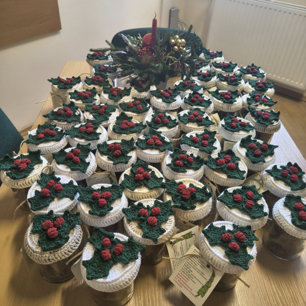 W Szkole Podstawowej im. Olimpijczyków Polskich w Kramsku przygotowano niezwykłe upominki, które łączą w sobie kulinarne umiejętności, ręczną pracę oraz świąteczne ciepło. Własnoręcznie upieczone pierniczki zamknięto w ozdobnych słoikach, a ich wieczka udekorowano szydełkową ozdobą z motywem gałązek. Całość wykonano z wyraźną dbałością o detale, co nadało prezentom niepowtarzalnego charakteru.