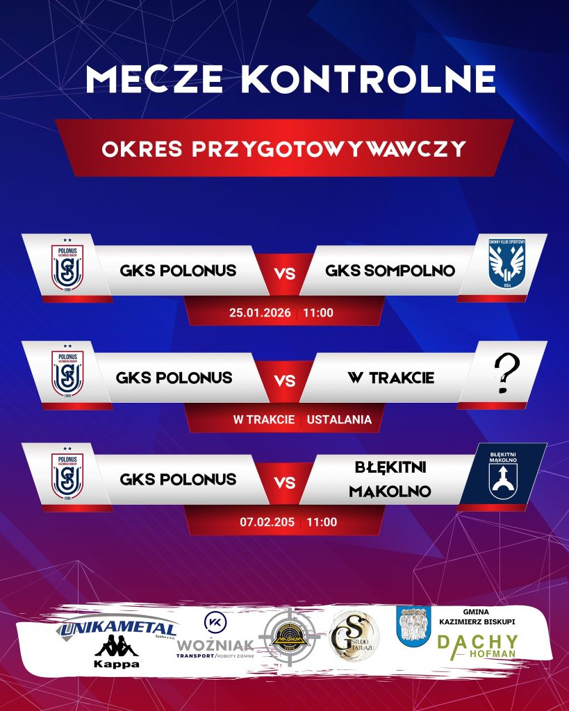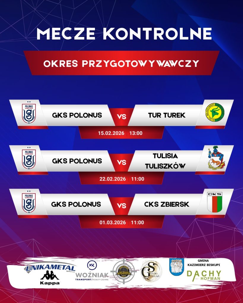 Występujący w Red Box V lidze GKS Polonus Kazimierz Biskupi zajmuje obecnie 16. miejsce w tabeli, co oznacza, że runda wiosenna będzie dla nich kluczową batalią o ligowy byt. Pierwszy sprawdzian czeka ich 25 stycznia o godzinie 11:00, kiedy to podejmą GKS Sompolno. Początek lutego to starcie z Błękitnymi Mąkolno (07.02), a tydzień później zawodnicy z Kazimierza Biskupiego zmierzą się z Turem Turek (15.02). Serię sparingów dopełnią pojedynki z Tulisią Tuliszków (22.02) oraz CKS Zbiersk (01.03). Takie zestawienie rywali ma zapewnić drużynie stabilną formę przed wiosennymi zmaganiami ligowymi.