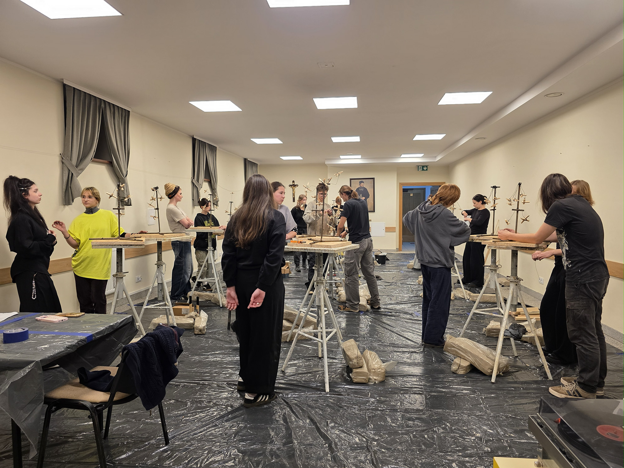 W pracowni rzeźbiarskiej powstały pierwsze koncepcje portretów i płaskorzeźb, których tematyka nawiązuje do krajobrazu i dziedzictwa Kazimierza Biskupiego. Uczniowie rozpoczęli także tworzenie konstrukcji rzeźbiarskich stanowiących bazę dla dalszych realizacji portretowych.