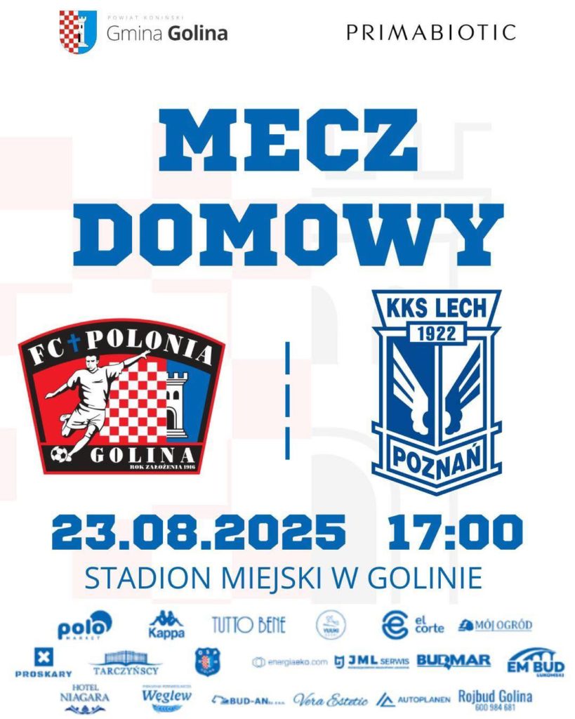 Polonia Golina zaprasza kibiców na kolejne spotkanie w ramach ARTBUD IV ligi. Już dziś drużyna zmierzy się z zespołem Wiary Lecha Poznań. Początek meczu zaplanowano na godzinę 17:00 na stadionie w Golinie.