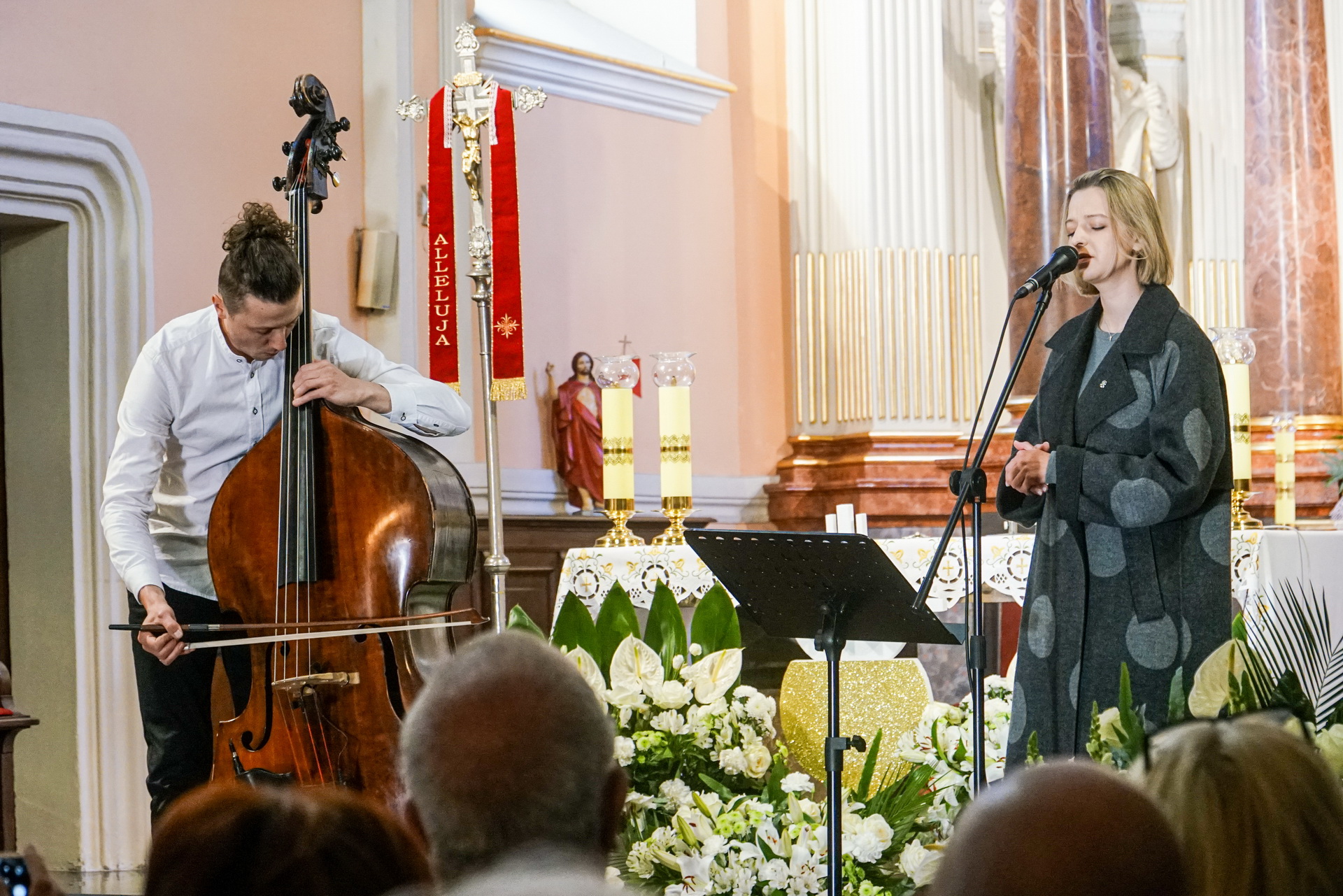 Publiczność usłyszała tradycyjne pieśni Maryjne w niezwykle kameralnej, a zarazem poruszającej aranżacji – z wykorzystaniem wyłącznie dwóch instrumentów: głosu i kontrabasu. Ich współbrzmienie nadało znanym utworom nowe, głębokie znaczenie, które poruszyło słuchaczy.