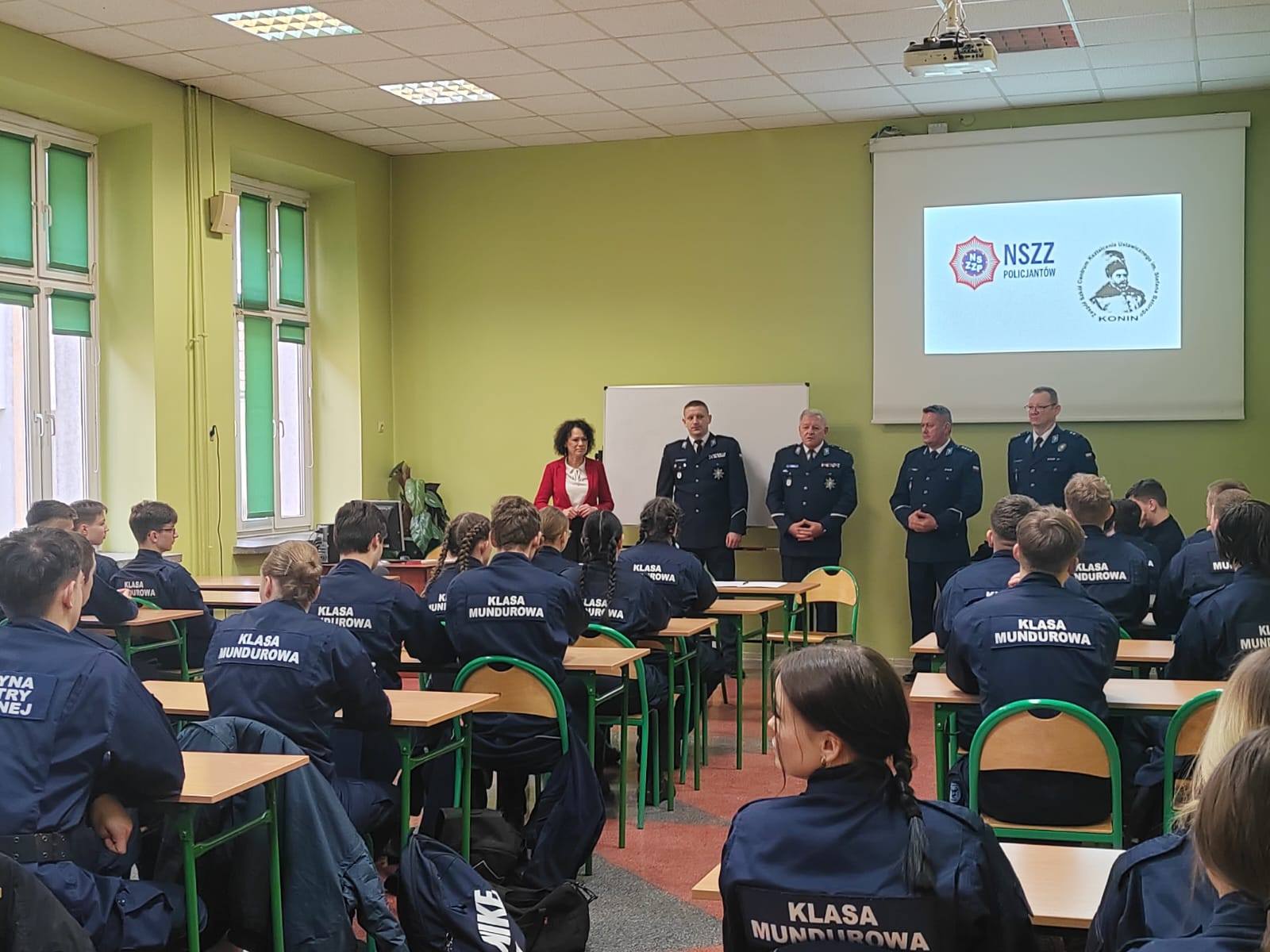 W spotkaniu uczestniczyli również po. Zastępcy Naczelnika Wydziału Patrolowo-Interwencyjnego nadkom. Tomasz Biernat oraz podkom. Mateusz Przybyłowski, Wiceprzewodniczący Zarządu Wojewódzkiego NSZZ Policjantów województwa wielkopolskiego. Ich obecność podkreśliła znaczenie współpracy między Policją a placówkami edukacyjnymi oraz zaangażowanie w rozwój przyszłych funkcjonariuszy.