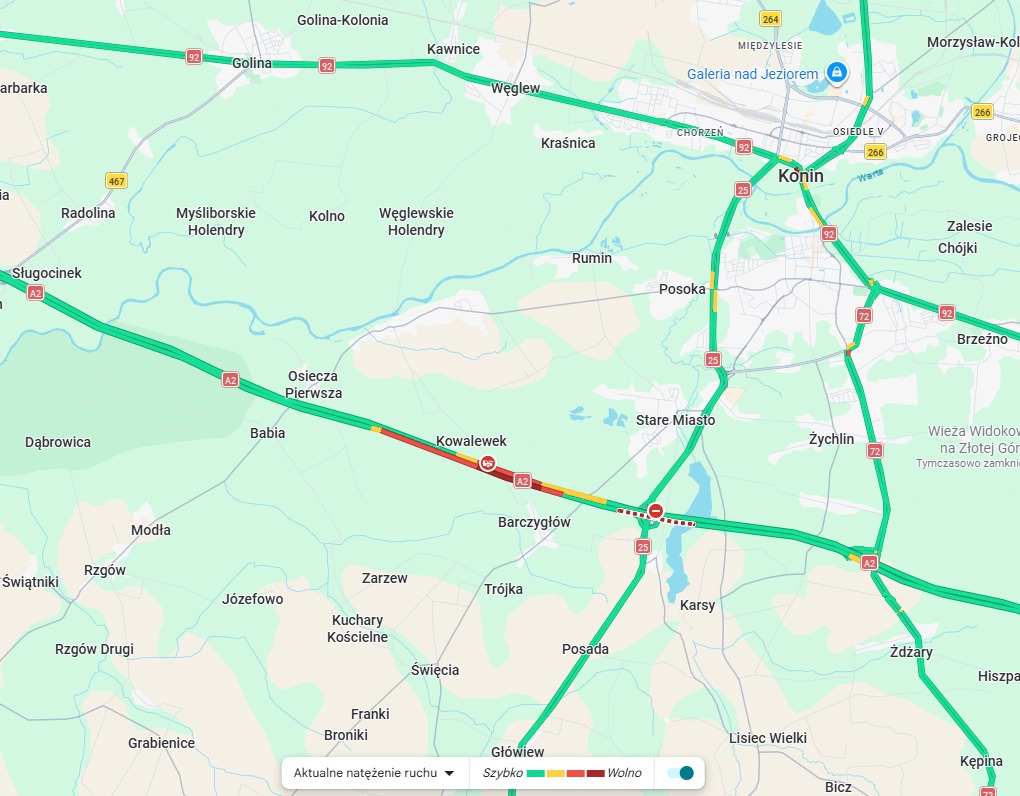 Poważny wypadek na autostradzie A2 pod Koninem. Trasa w stronę Warszawy całkowicie zablokowana