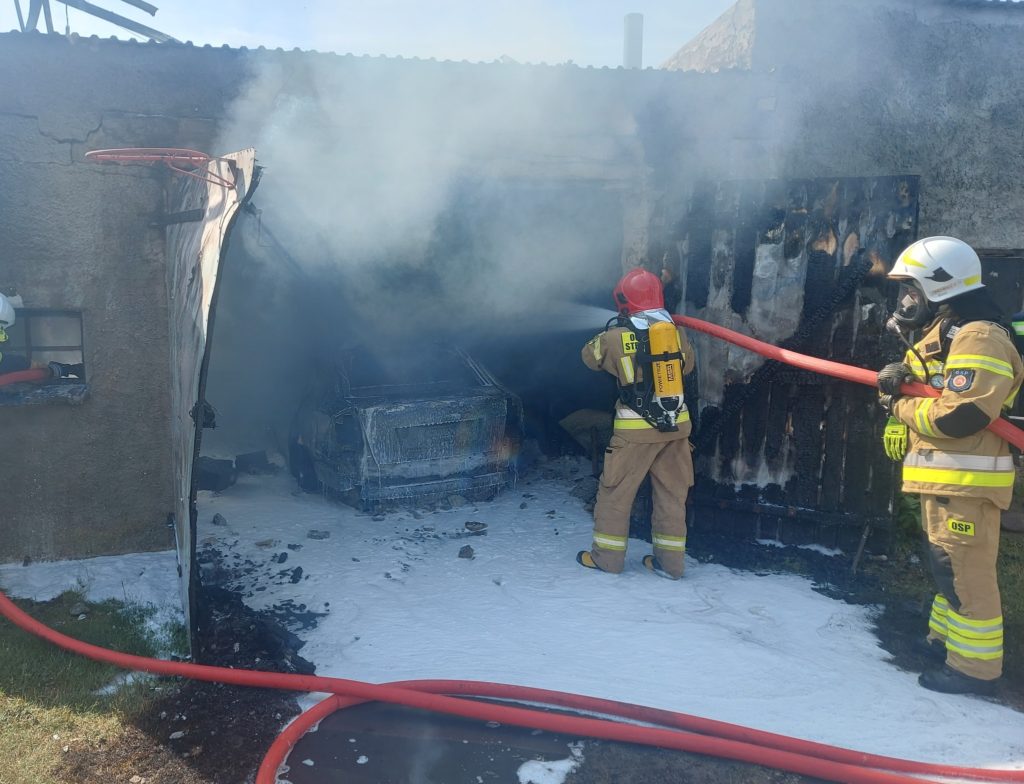 OGIEŃ OBJĄŁ CAŁY GARAŻ I SAMOCHÓD
