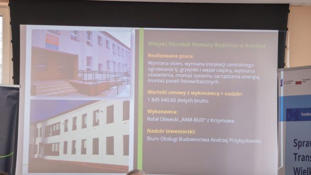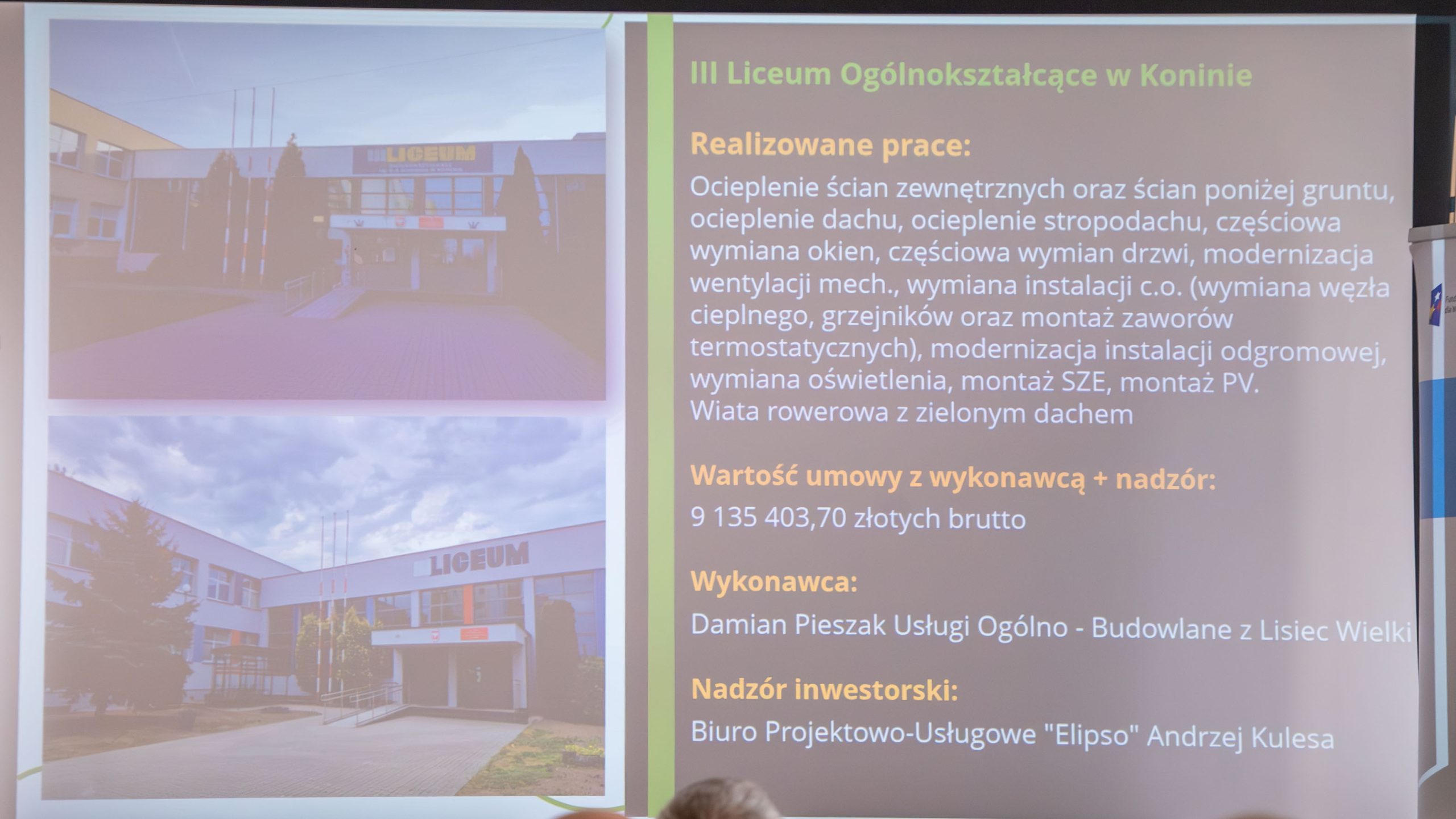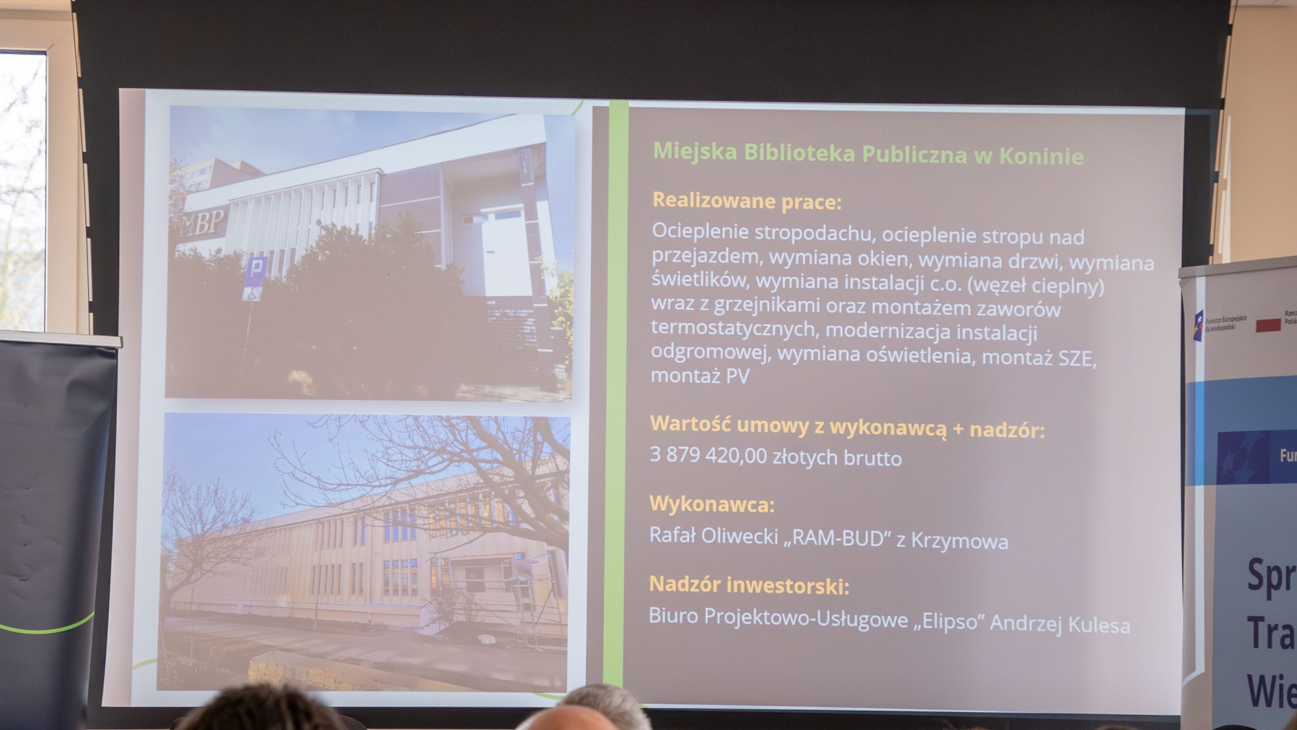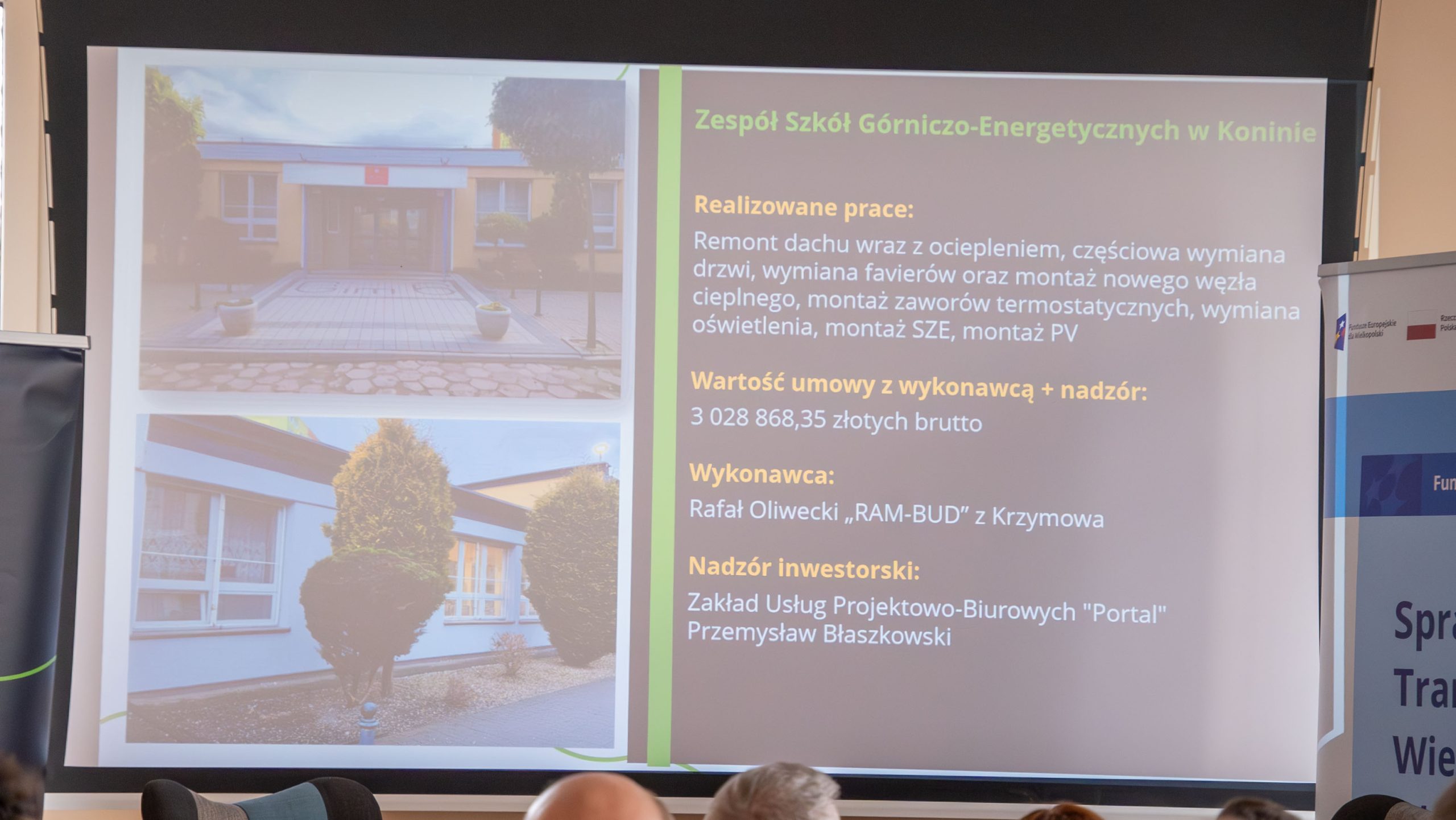 Podczas spotkania zaprezentowano cele projektu, zakres wykonanych prac, osiągnięte wskaźniki energetyczne i środowiskowe oraz doświadczenia użytkowników zmodernizowanych obiektów.