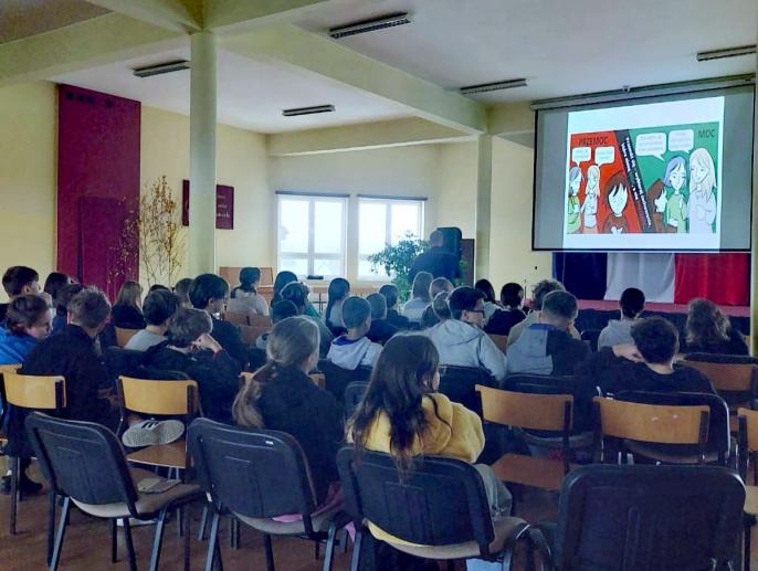 Prelekcja o przemocy rówieśniczej dla uczniów z Kramska