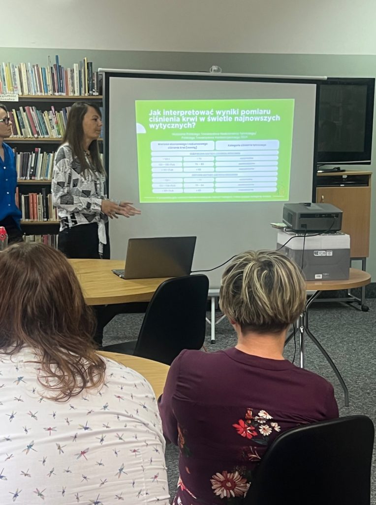 Ekspertki z poradni przybliżyły, czym dokładnie jest nadciśnienie, jak je rozpoznać i – co równie istotne – jak prawidłowo mierzyć ciśnienie tętnicze w warunkach domowych. Uczestnicy dowiedzieli się także, jakie czynniki sprzyjają podwyższonym wartościom ciśnienia – wśród nich wymieniono nie tylko błędy żywieniowe, lecz także inne współistniejące schorzenia, tryb życia czy czynniki genetyczne.