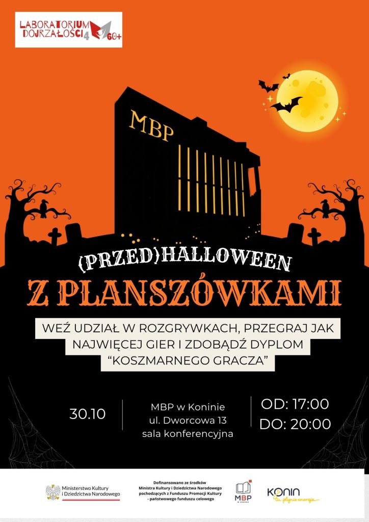 Miejska Biblioteka Publiczna im. Zofii Urbanowskiej w Koninie zaprasza wszystkich miłośników dobrej zabawy – dzieci, młodzież, rodziców oraz seniorów – na wyjątkowe (Przed)Halloweenowe Spotkanie z Grami Planszowymi. Wydarzenie odbędzie się 30 października 2025 roku (czwartek) w godzinach 17:00–20:00 w sali konferencyjnej MBP przy ul. Dworcowej 13.