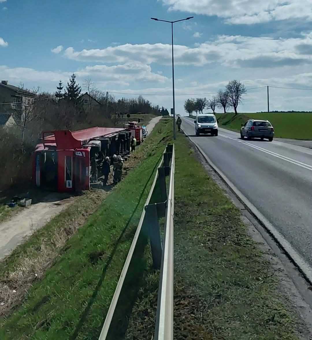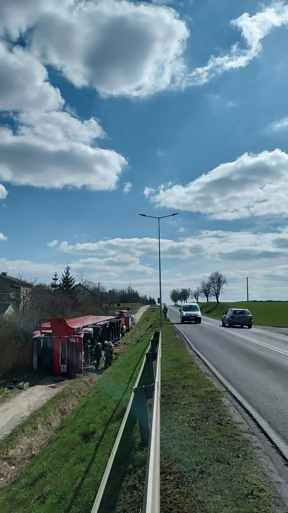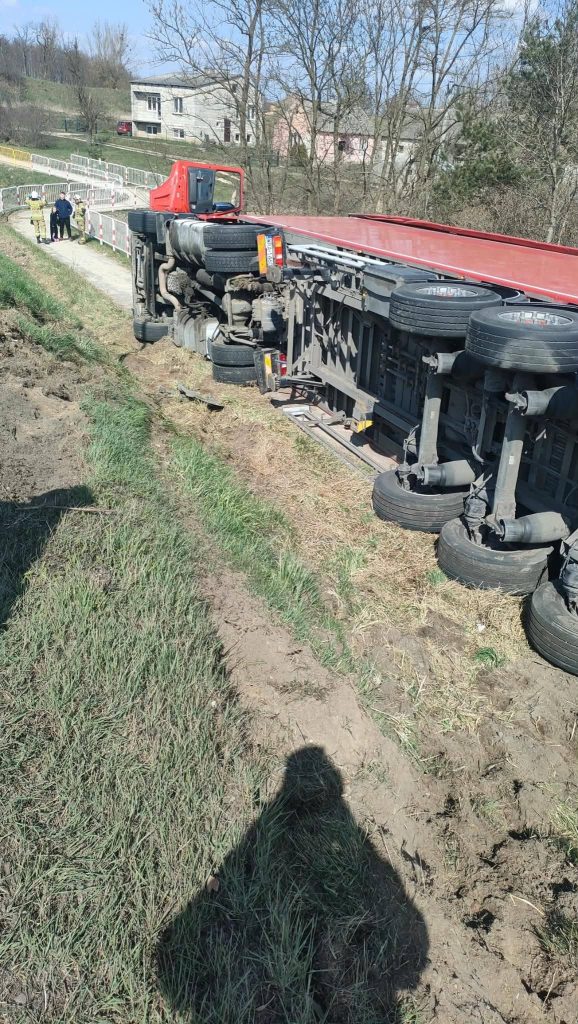 Zgłoszenie o zdarzeniu drogowym wpłynęło do dyżurnego operacyjnego w godzinach popołudniowych. Na miejsce zdarzenia natychmiast zadysponowano jednostki ochrony przeciwpożarowej. Strażacy po przybyciu zabezpieczyli teren. Przed służbami jeszcze najtrudniejszy etap akcji, polegający na podniesieniu całego zestawu, co sprawia, że kierowcy muszą liczyć się z utrudnieniami na drodze. Z przekazanych informacji wynika, że kierowca nie odniósł żadnych poważnych obrażeń, a w momencie zdarzenia na chodniku i ścieżce rowerowej, na szczęście, nie znajdowały się żadne osoby postronne.