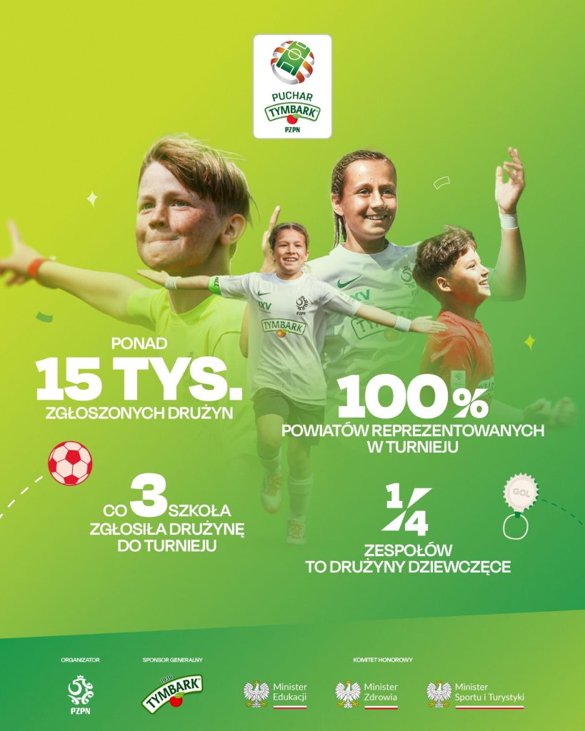 Ponad 15 tysięcy drużyn z całej Polski zgłosiło się do XXVI edycji Pucharu Tymbark. Największego turnieju piłkarskiego dla dzieci w Europie. Do rozgrywek przystąpiła niemal co trzecia szkoła podstawowa w kraju, a reprezentację mają wszystkie powiaty. Skala tegorocznych zgłoszeń potwierdza, że piłka nożna wciąż pozostaje jedną z najpopularniejszych aktywności sportowych wśród najmłodszych.