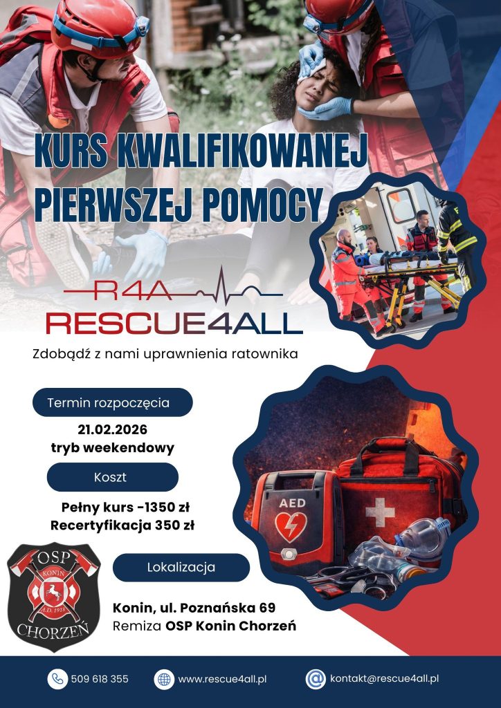 Bezpieczeństwo mieszkańców naszego regionu zależy nie tylko od służb zawodowych, ale również od przeszkolonych cywilów. Już niebawem w Koninie nadarzy się wyjątkowa okazja, aby zdobyć prestiżowy tytuł ratownika. Firma Rescue4All, znana z wysokiego poziomu merytorycznego, organizuje kurs Kwalifikowanej Pierwszej Pomocy (KPP). Jest to najbardziej zaawansowane szkolenie z zakresu ratownictwa dostępne dla osób, które nie posiadają wykształcenia medycznego.