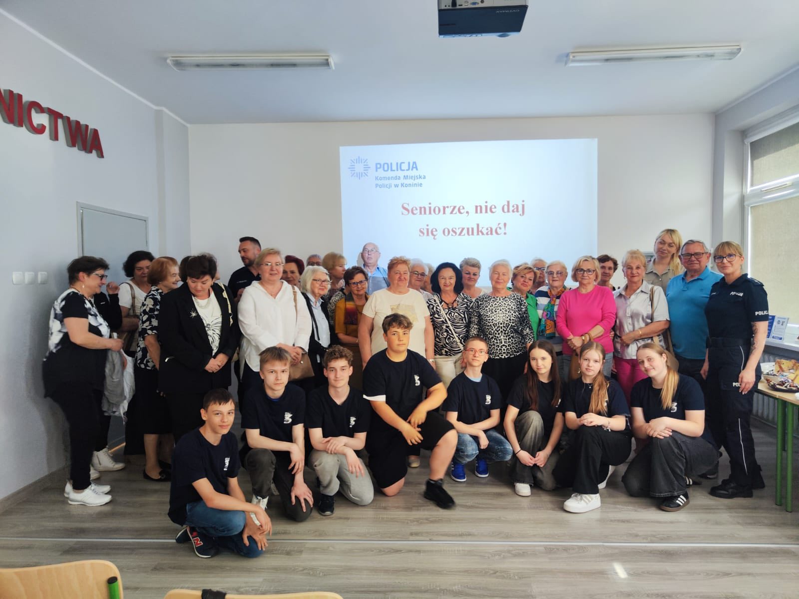 Pierwszą część wydarzenia poprowadzili funkcjonariusze Komendy Miejskiej Policji w Koninie, którzy przeprowadzili prelekcję pt. „Seniorze, nie daj się oszukać”. W jej trakcie przedstawili najczęstsze schematy oszustw, z jakimi mogą spotkać się osoby starsze – m.in. „na wnuczka” czy „na policjanta”. Policjanci przekazali seniorom praktyczne wskazówki, jak nie dać się zwieść przestępcom i jak postępować w sytuacjach budzących podejrzenia. Spotkanie miało na celu wzmocnienie świadomości i poczucia bezpieczeństwa wśród osób starszych.