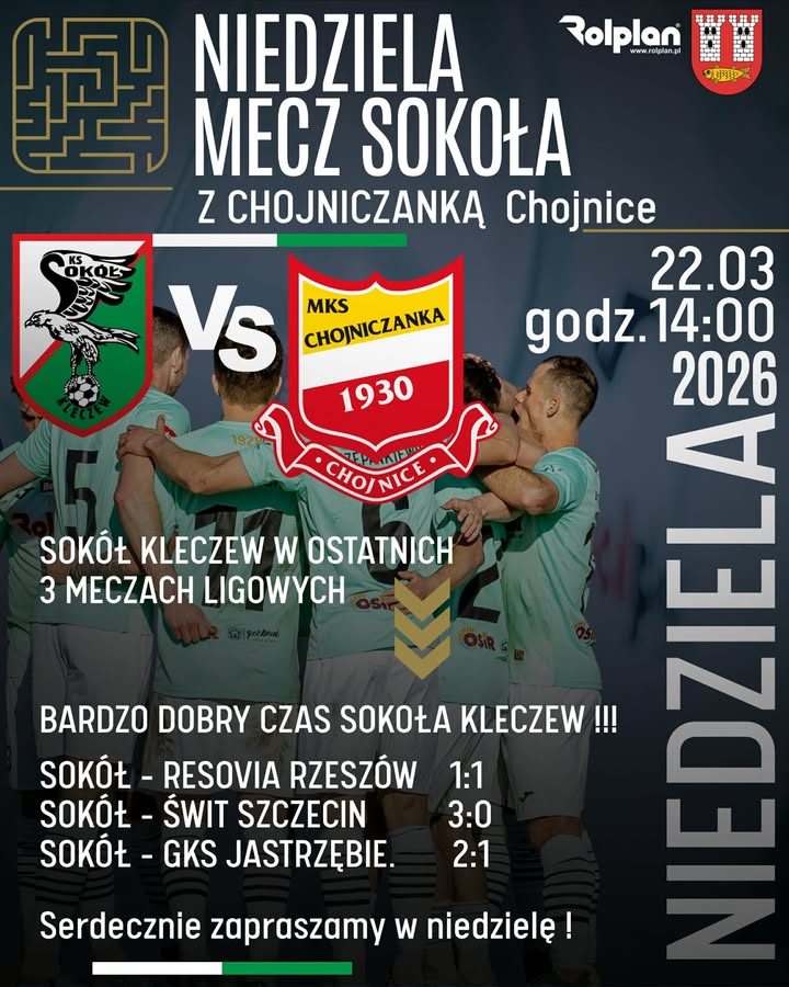 Kibice z regionu konińskiego z niecierpliwością wyczekiwali dzisiejszego popołudnia. Już za nieco ponad godzinę na Stadionie Miejskim w Kleczewie wybrzmi pierwszy gwizdek sędziego. W ramach 24. kolejki Betclic 2. Ligi miejscowy Sokół podejmie wymagającego rywala – Chojniczankę Chojnice. Jest to kluczowe spotkanie dla układu tabeli, które przyciąga uwagę fanów piłki nożnej z całego powiatu.