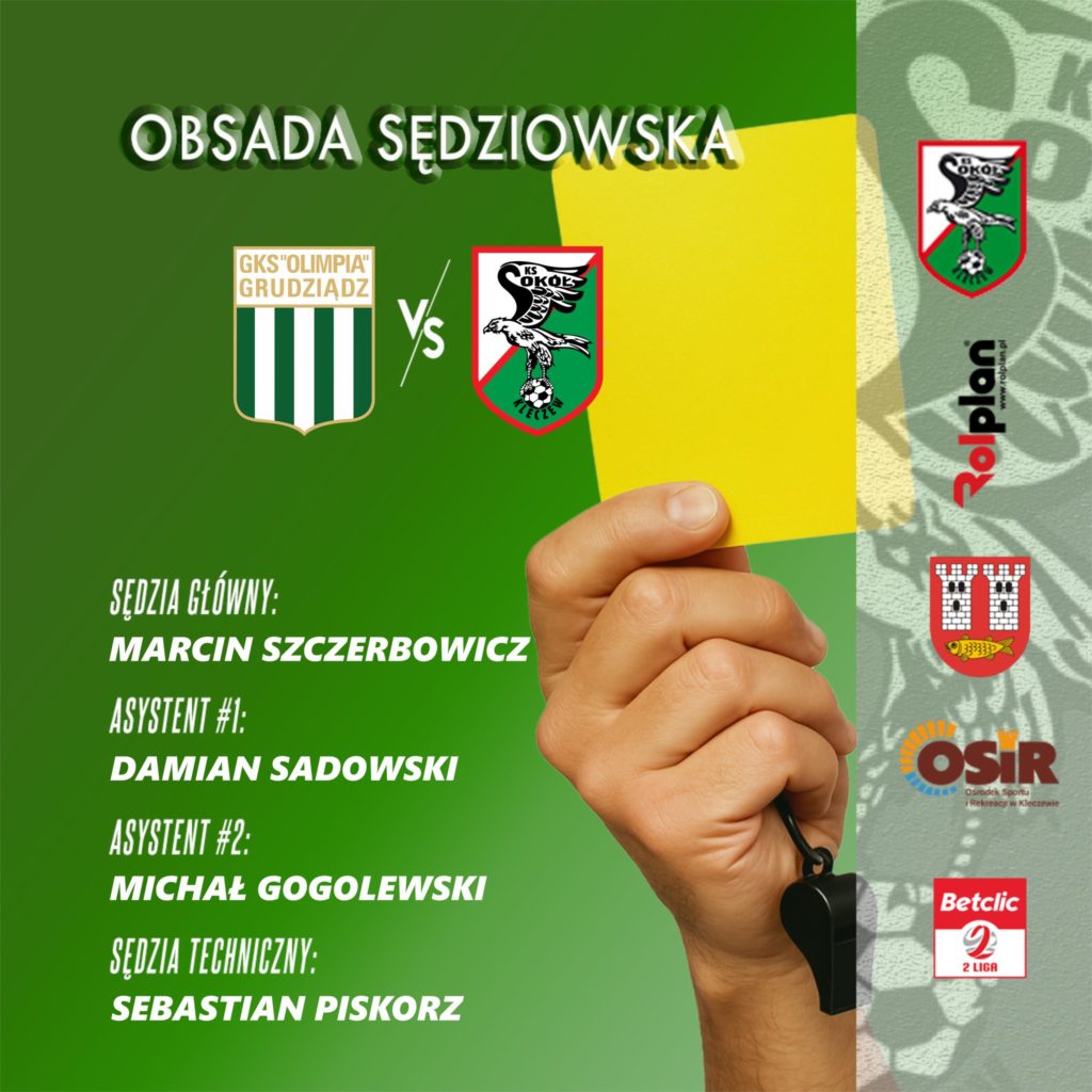 Niedzielne spotkanie Sokoła Kleczew w rozgrywkach ligowych poprowadzi Marcin Szczerbowicz, doświadczony arbiter z Olsztyna. W swojej karierze sędziował mecze we wszystkich centralnych ligach w Polsce, w tym 23 spotkania w PKO BP Ekstraklasie.
