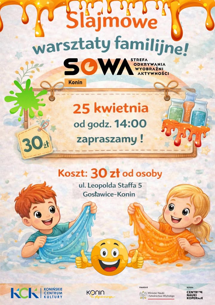 Kolejną propozycją są slajmowe warsztaty familijne w SOWA Konin, które odbędą się 25 kwietnia od godziny 14:00.