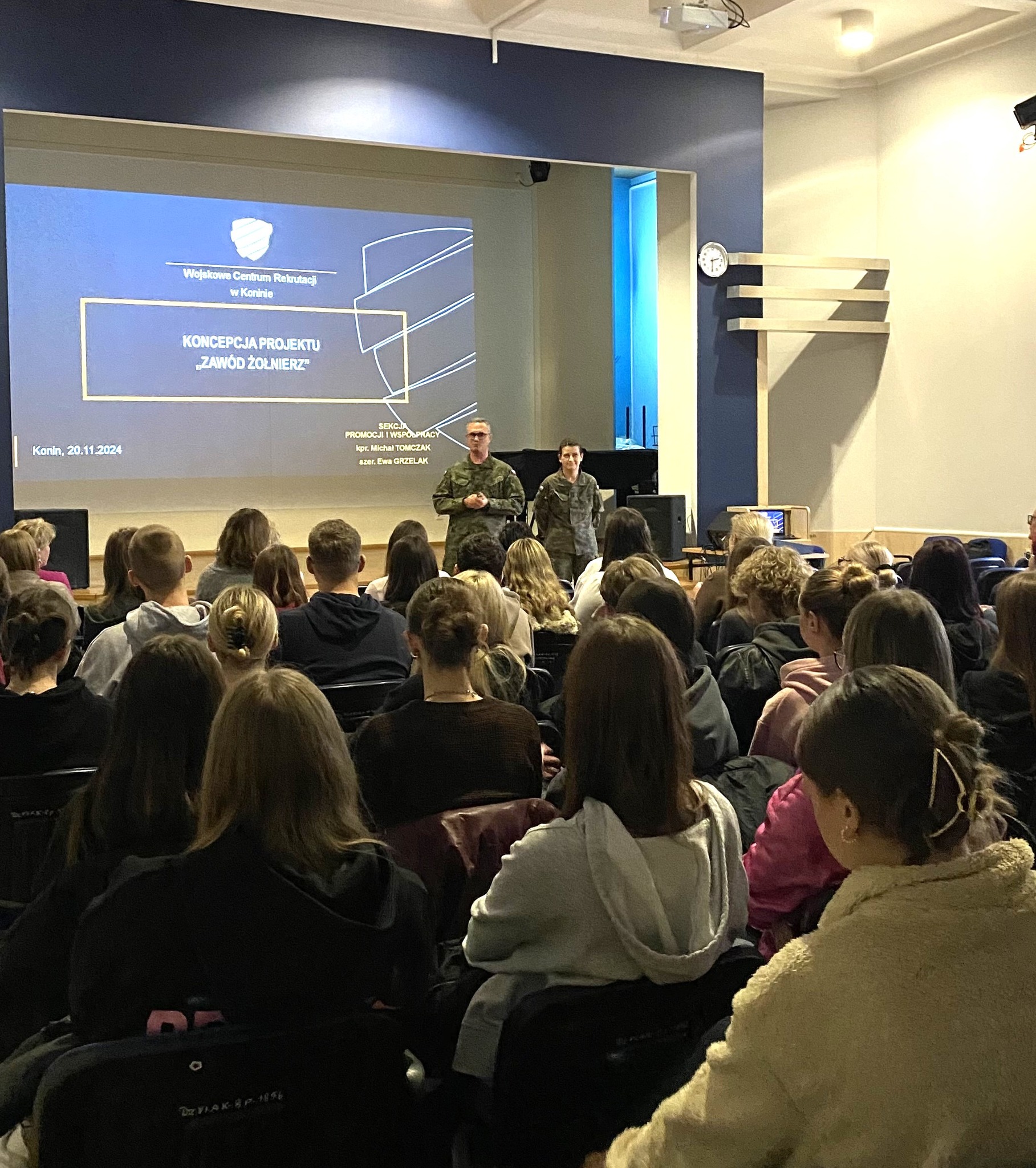 20 listopada 2024 roku maturzyści I Liceum Ogólnokształcącego im. Tadeusza Kościuszki w Koninie mieli wyjątkową okazję uczestniczyć w spotkaniu z kpr. Michałem Tomczakiem, absolwentem szkoły oraz przedstawicielem Wojskowego Centrum Rekrutacji w Koninie.