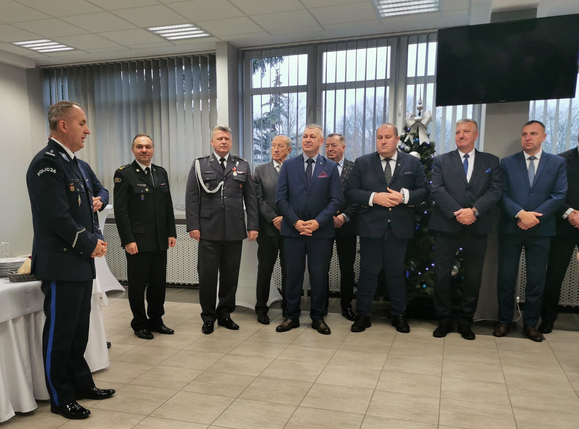 Komendant złożył zebranym życzenia zdrowych, radosnych i spokojnych Świąt Bożego Narodzenia, zwracając szczególną uwagę na wsparcie rodzin i bliskich policjantów. Podziękował także przedstawicielom samorządów oraz zaprzyjaźnionych służb za owocną współpracę.