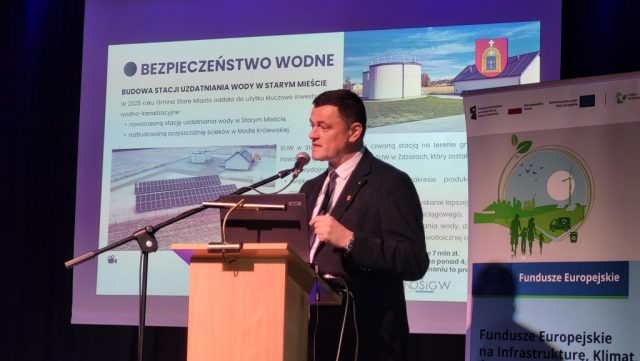 Podczas swojego wystąpienia wójt podkreślił, że samorząd Starego Miasta konsekwentnie realizuje projekty, które mają długofalowy wpływ na funkcjonowanie gminy. Wśród nich wymienił m.in. budowę i modernizację stacji uzdatniania wody, oczyszczalni ścieków, rozbudowę sieci wodno-kanalizacyjnej, termomodernizację budynków publicznych oraz instalacje fotowoltaiczne.