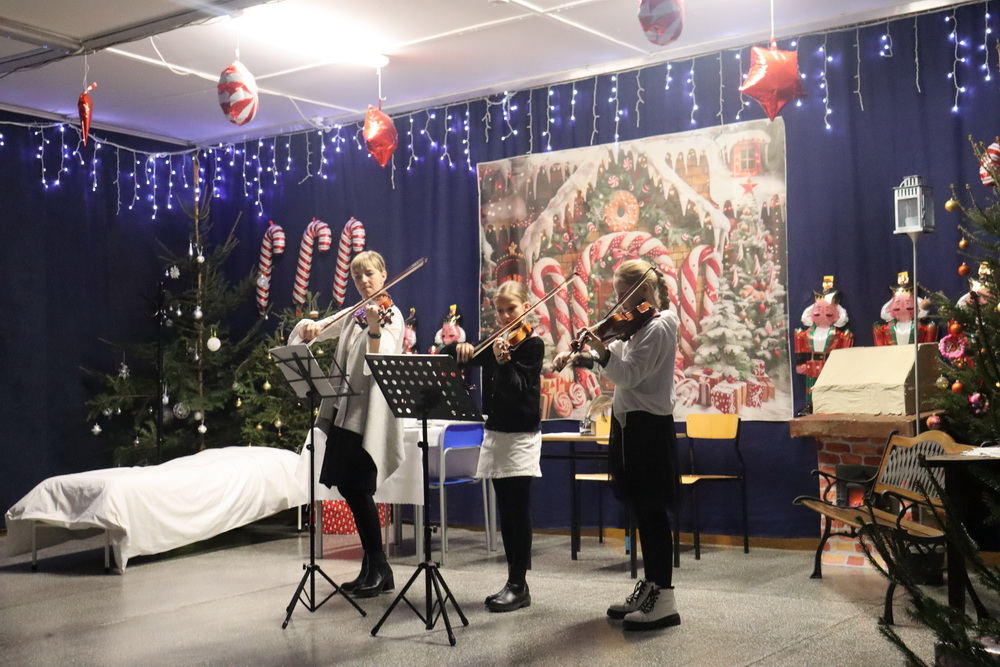 Uczniowie, pod kierunkiem Ewy Rogalskiej, zaprezentowali spektakl „Opowieść wigilijna”. Przedstawienie, dopracowane w każdym szczególe, zachwyciło publiczność. – Dzięki starannie przygotowanej scenerii i charakteryzacji można było poczuć się jak w prawdziwym teatrze – zauważyła jedna z seniorek obecnych na wydarzeniu.
