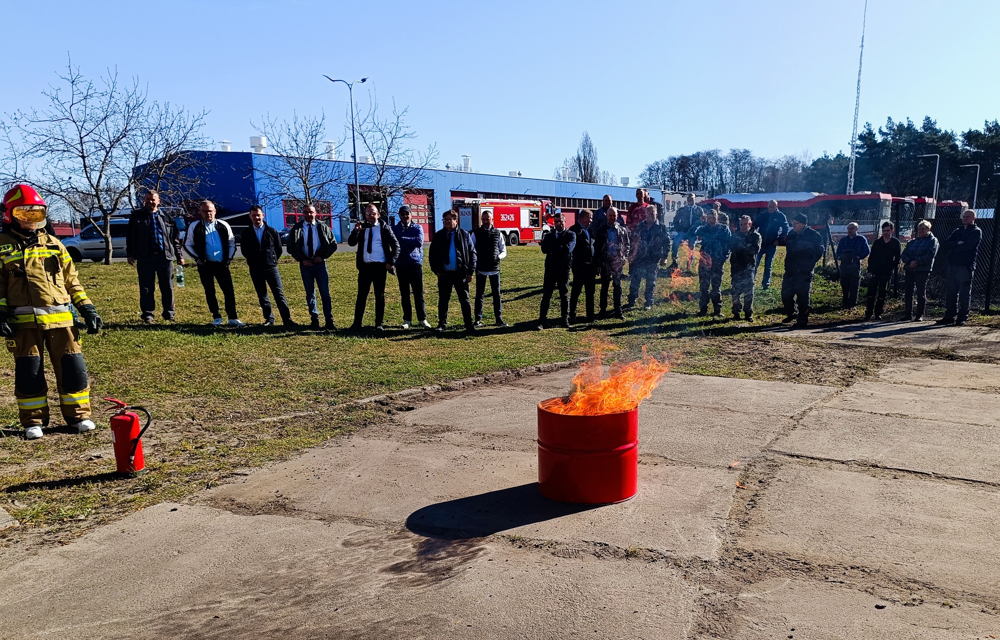 - Praktyczne ćwiczenia z gaszenia ognia przy użyciu gaśnic.