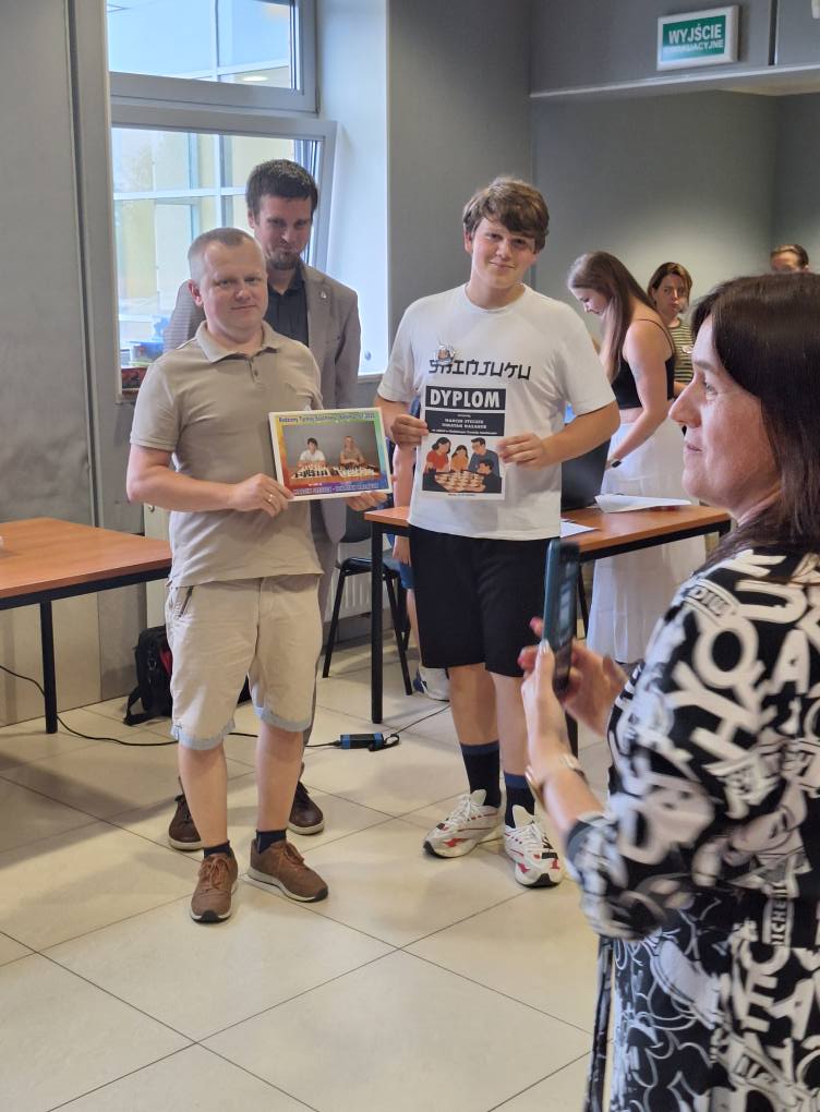 W zawodach wzięli udział zarówno doświadczeni szachiści, jak i osoby grające rekreacyjnie – rodzice, dziadkowie, dzieci i kuzynostwo. System punktowy premiował zwycięstwa całych par (2:0 lub 1,5:0,5), dlatego współpraca i wzajemne wsparcie miały kluczowe znaczenie. Organizatorzy zadbali o każdy detal – uczestnicy otrzymali pamiątkowe dyplomy, zdjęcia w ramkach i przypinki, a najlepsi odebrali puchary, medale i atrakcyjne nagrody.