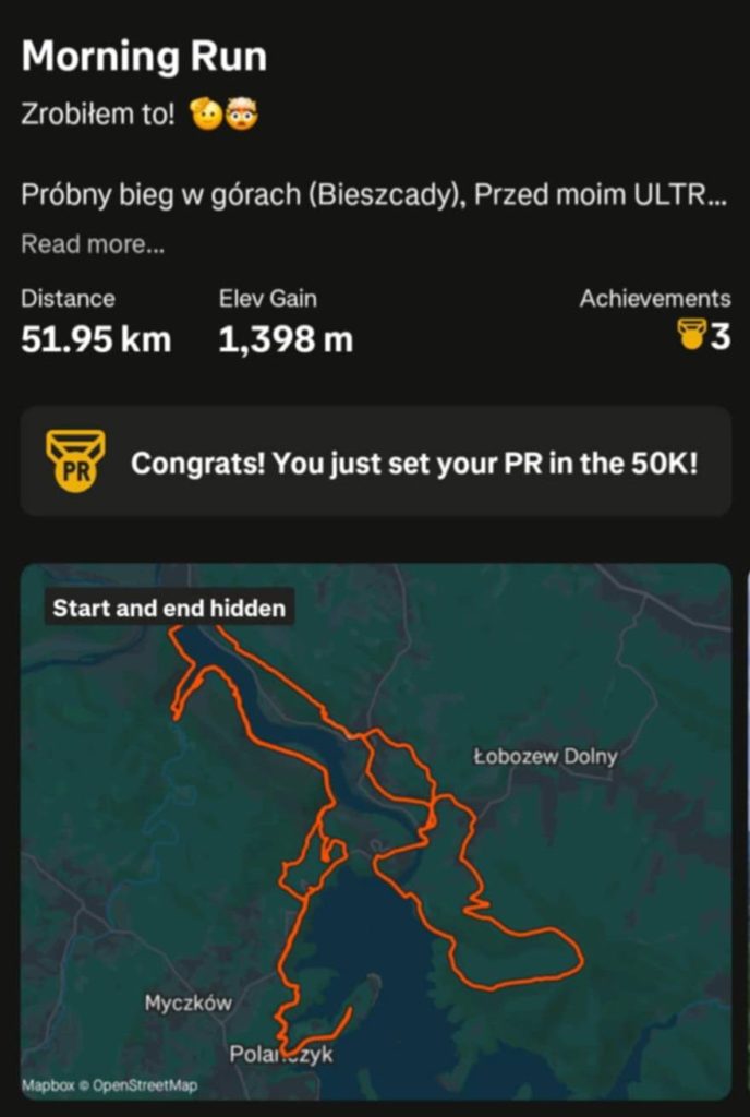 Podczas biegu w Bieszczadach Fabian napotkał wiele trudności – od zgubienia trasy, przez pomylenie ścieżek leśnych, po niemal całkowite rozładowanie telefonu. Momentami musiał przedzierać się przez gęste zarośla, pokrzywy i krzewy z kolcami.