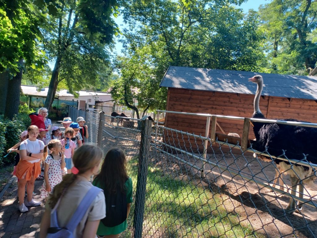 Środowy poranek rozpoczął się od spotkania w czytelni, podczas którego dzieci poznawały konińskie zabytki, przeglądając książki z działu regionalnego i rozmawiając o przeszłości swojego miasta. Następnie uczestnicy wyruszyli do pobliskiego parku im. Fryderyka Chopina. Tam, w cieniu drzew, odwiedzili Mini Zoo i przyjrzeli się jego sympatycznym mieszkańcom.