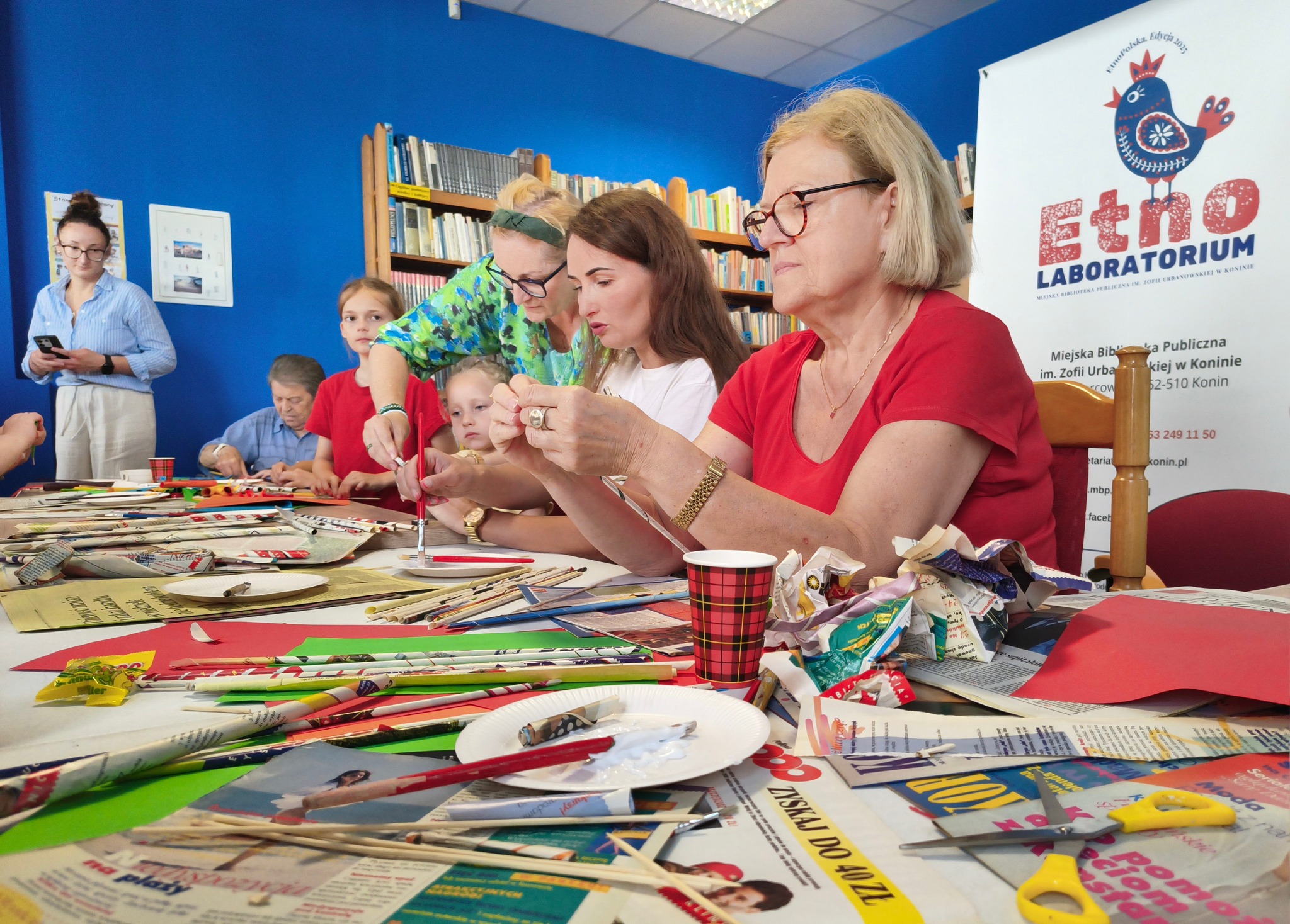 Miejska Biblioteka Publiczna w Koninie zaprosiła mieszkańców na niezwykłe warsztaty rękodzielnicze w ramach projektu EtnoLABORATORIUM, które odbyły się 2 sierpnia w Filii „Starówka”. Spotkanie łączyło pokolenia, tradycję z nowoczesnością oraz rzemiosło z recyklingiem.