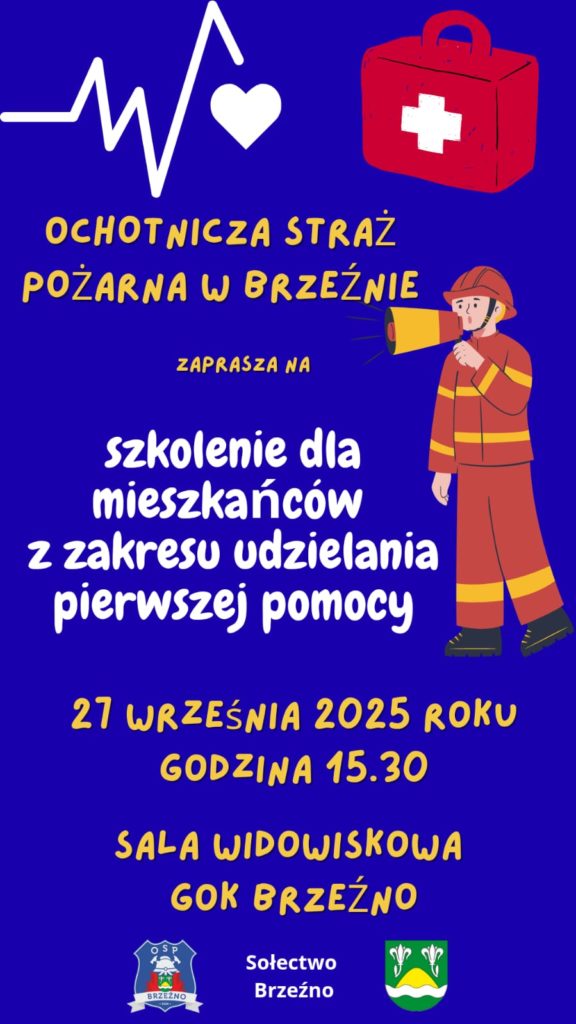 Gmina Krzymów zaprasza mieszkańców na bezpłatne warsztaty z zakresu udzielania pierwszej pomocy, które odbędą się w sobotę, 27 września, w Brzeźnie.