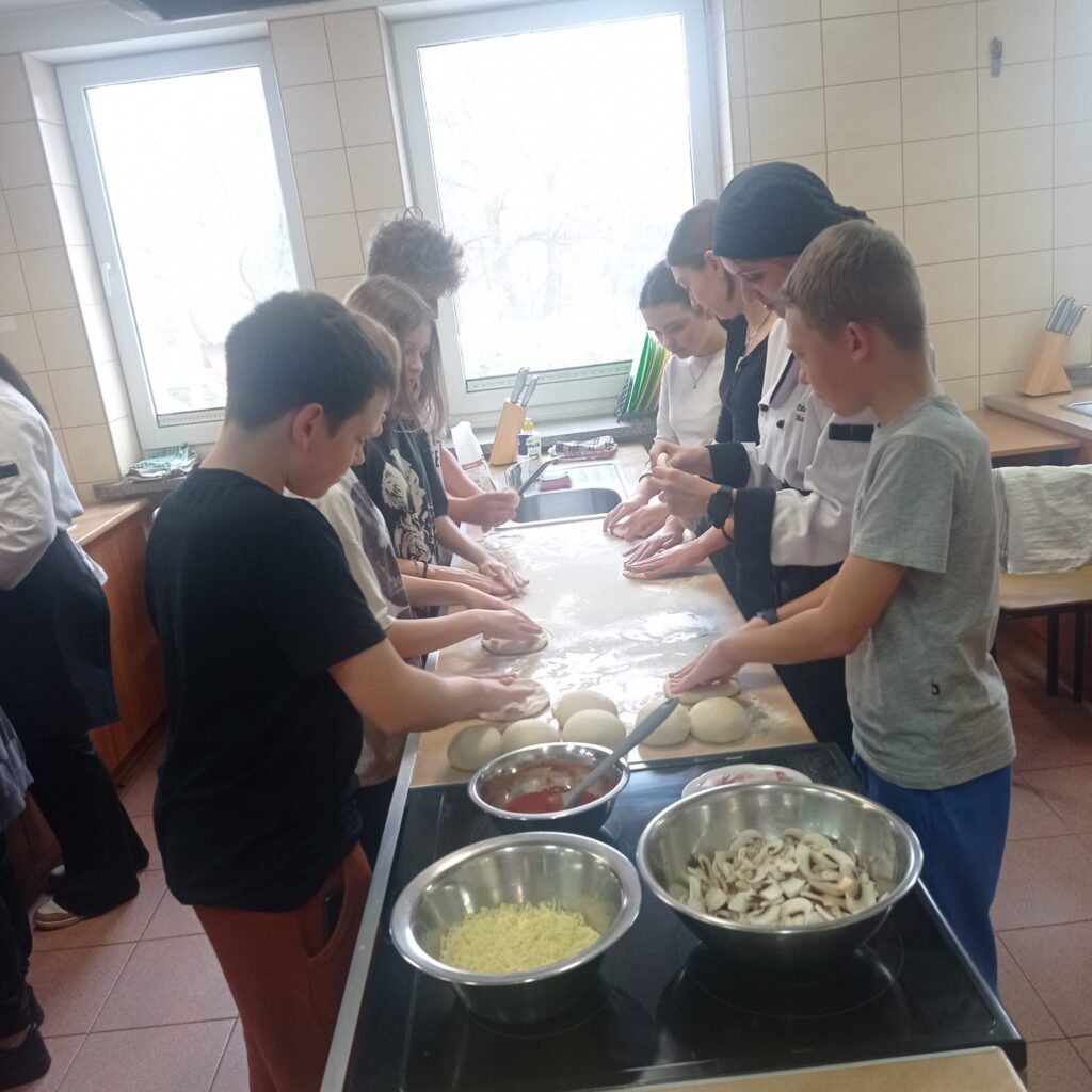 Zespół Szkół Budownictwa i Kształcenia Zawodowego w Koninie gościł uczniów klas VI ze Szkoły Podstawowej w Żychlinie, którzy wzięli udział w praktycznych warsztatach kulinarnych poświęconych przygotowaniu pizzy. Spotkanie poprowadzili uczniowie klasy 3 TŻG, prezentując kolejne etapy tworzenia tradycyjnej włoskiej potrawy.
