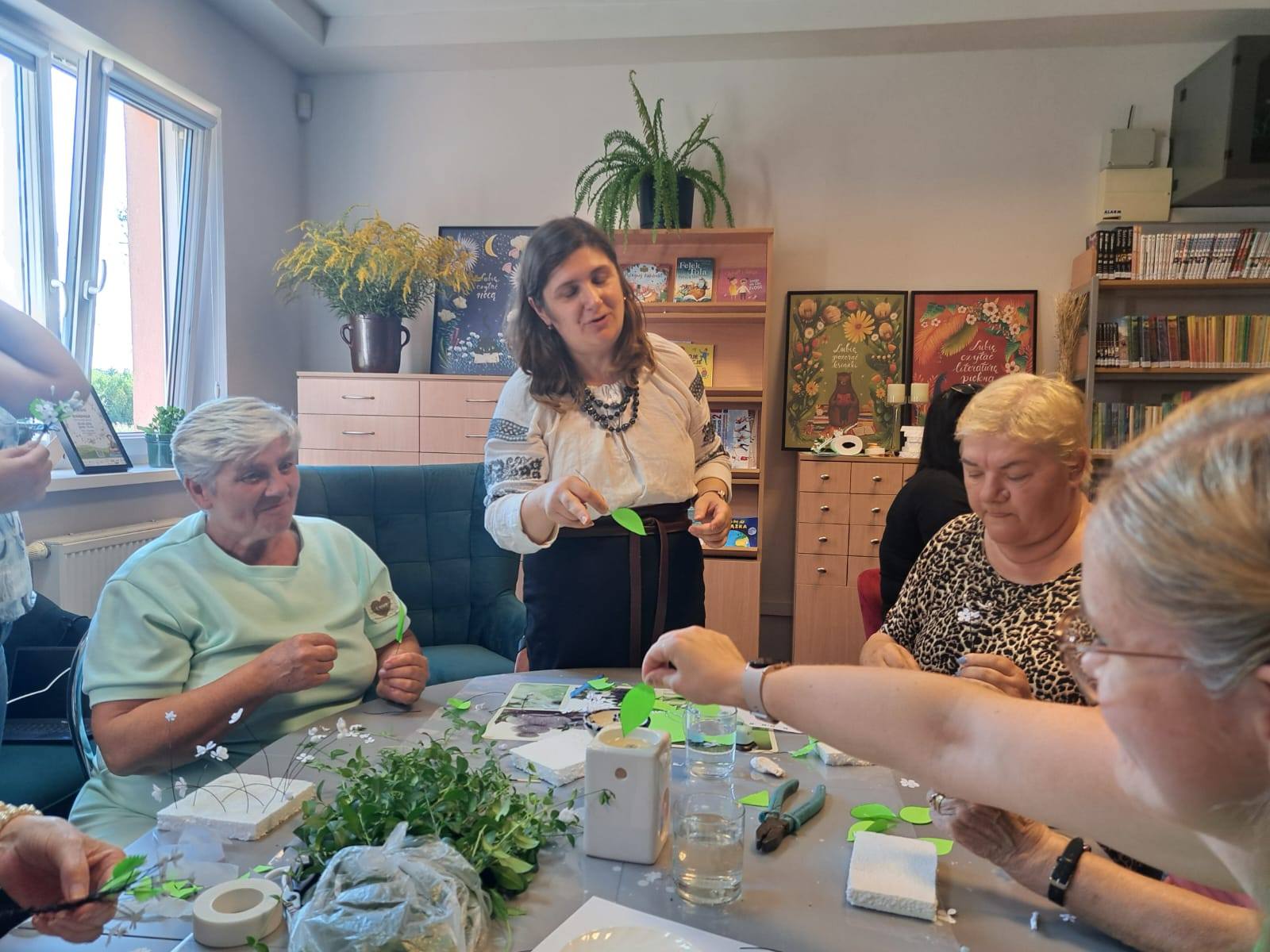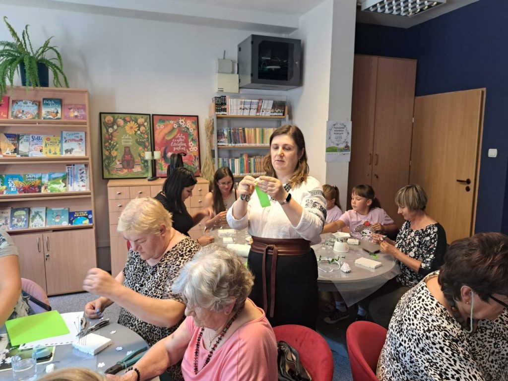 Uczestnicy poznali obrzędy towarzyszące dawnym wiejskim uroczystościom, takie jak zaprosiny, rozpleciny i oczepiny. Prelekcja dotyczyła znaczenia wianków panieńskich i weselnych oraz ich roli w tradycyjnym stroju ludowym. Następnie nadszedł czas na część praktyczną – tworzenie kwiatów i listków, ich woskowanie oraz rozmowy o symbolice poszczególnych elementów.