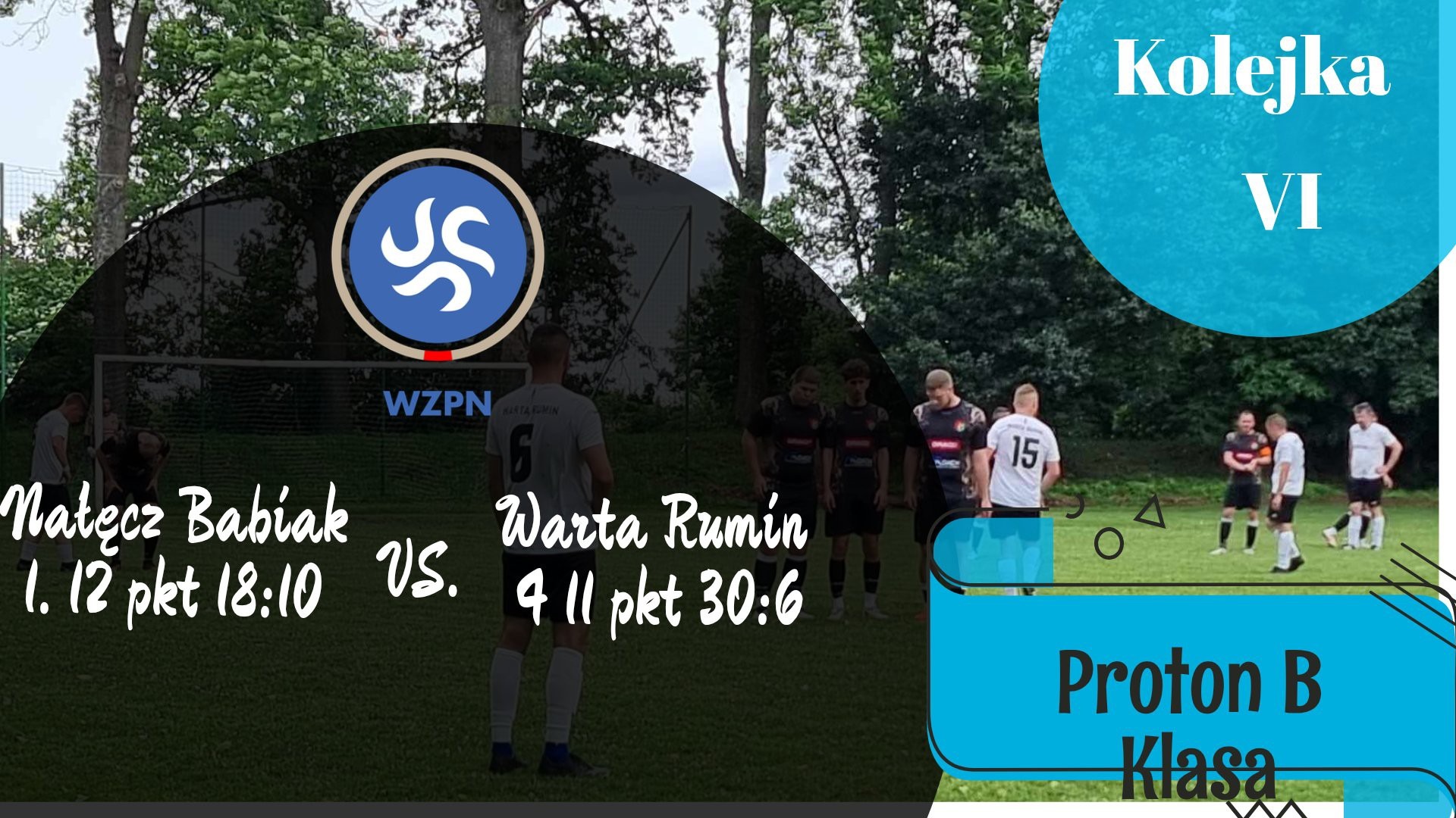 W sobotę 20 września o godzinie 13:00 piłkarze Warty Rumin rozegrają kolejne spotkanie w ramach rozgrywek Proton B Klasy. Tym razem czeka ich wyjazd do Babiaka, oddalonego o 45 kilometrów.