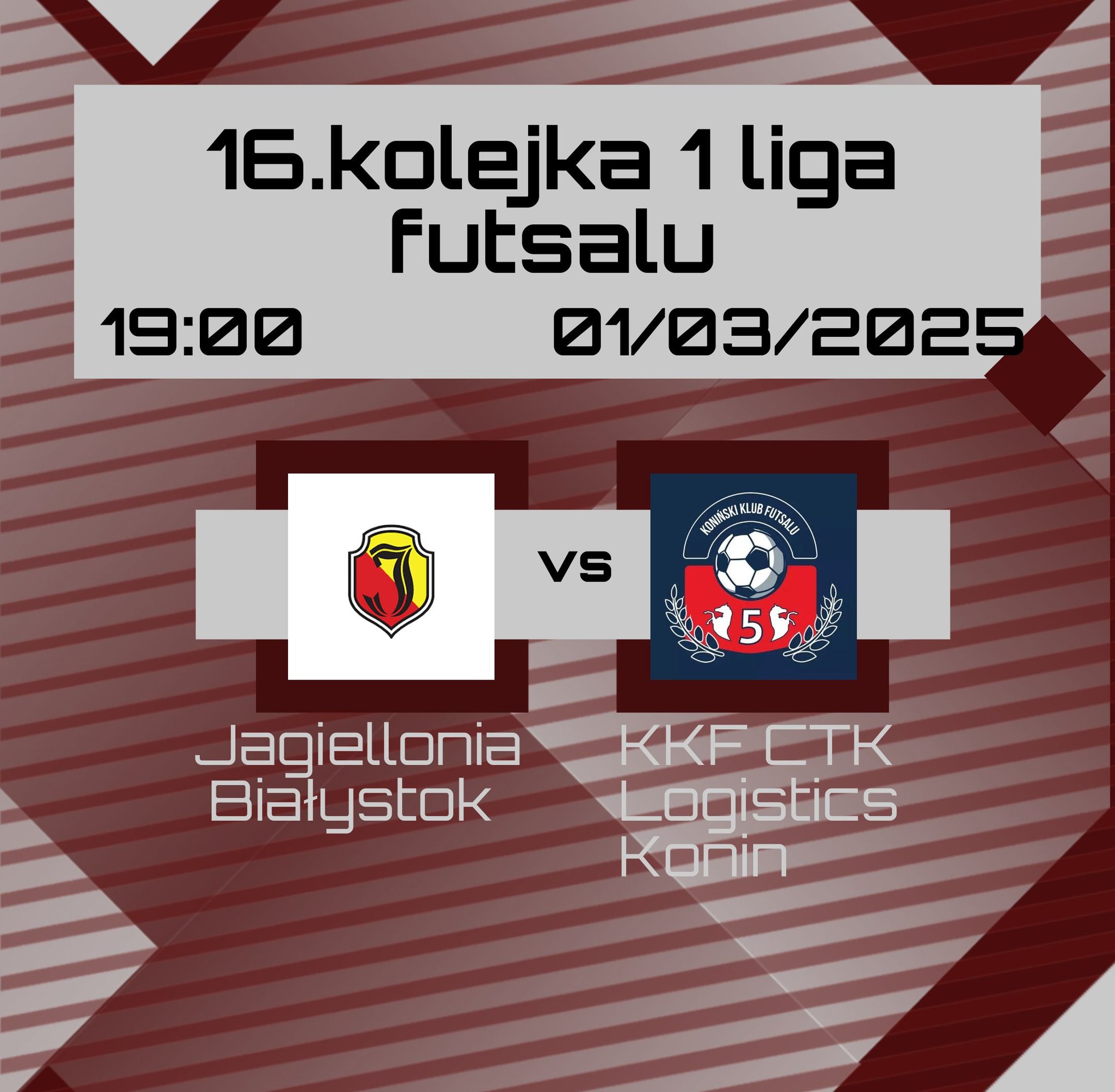 Już jutro, w ramach 16. kolejki 1. Polskiej Ligi Futsalu, czeka nas daleki wyjazd na spotkanie z drużyną Jagiellonia Białystok Futsal.