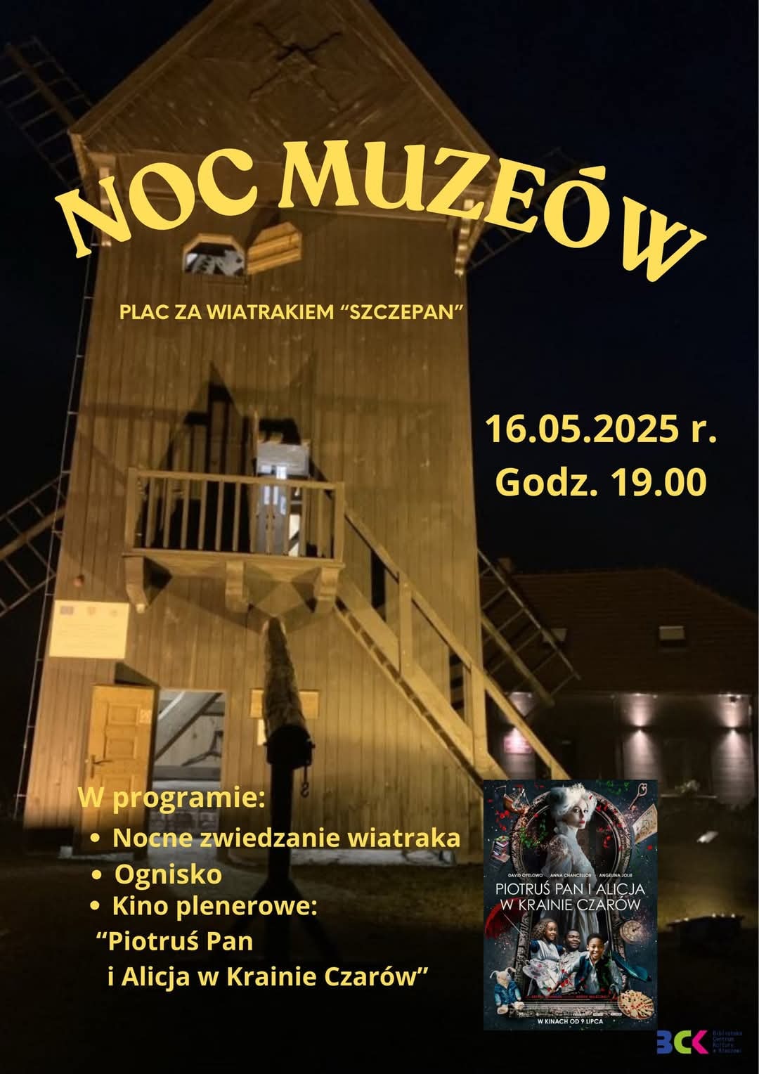 W programie zaplanowano atrakcje zarówno dla dorosłych, jak i dla dzieci. Organizatorzy zapowiadają klimatyczne oprowadzanie po zabytkowym wiatraku, wystawy tematyczne, pokazy oraz spotkania z pasjonatami lokalnej historii. Noc Muzeów to doskonała okazja, by w niezwykłej scenerii poznać tajemnice przeszłości i poczuć atmosferę dawnych czasów.