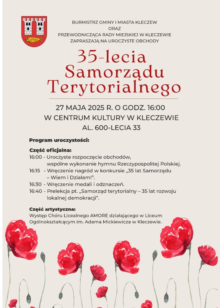 Zapraszamy mieszkańców do wspólnego świętowania 35-lecia Samorządu Terytorialnego. Kultura 13/05/2025 Mniej niż 1 min. PROMOCJA WydarzeniaZACHWYTNIKI 2025 – Wielkopolska pełna inspiracji!Redakcja - 20/10/20250ZdrowieNowoczesna Klinika Neurologii ICZMP – „Pomagamy Jak Umiemy” RossmannRedakcja LP - 14/10/20250AktualnościROSSMANN „MOJA DROGERIA” – NOWY WYMIAR ZAKUPÓW I BLISKOŚCIRedakcja - 10/10/20250AktualnościNoc Zawodowców 2025 w Kole – młodzież odkrywała zawody przyszłościRedakcja LP - 06/10/20250Stare MiastoHubertowski Piknik Myśliwski – tradycja i integracja w Starym MieścieRedakcja LP - 03/10/20250 FacebookTwitterWhatsApp MASZ WAŻNĄ WIADOMOŚĆ? Prześlij do naszej redakcji zdjęcie, film, lub informację! +48 63 242 01 01 Wstęp wolny! - Reklama - PROMOCJA WydarzeniaZACHWYTNIKI 2025 – Wielkopolska pełna inspiracji!Redakcja - 20/10/20250ZdrowieNowoczesna Klinika Neurologii ICZMP – „Pomagamy Jak Umiemy” RossmannRedakcja LP - 14/10/20250AktualnościROSSMANN „MOJA DROGERIA” – NOWY WYMIAR ZAKUPÓW I BLISKOŚCIRedakcja - 10/10/20250AktualnościNoc Zawodowców 2025 w Kole – młodzież odkrywała zawody przyszłościRedakcja LP - 06/10/20250Stare MiastoHubertowski Piknik Myśliwski – tradycja i integracja w Starym MieścieRedakcja LP - 03/10/20250 TagiBurmistrz KleczewaCześć artystycznaMedale i odznaczeniaSamorząd TerytorialnyUroczyste obchody Redakcjahttps://konin24.info Szukaj Konin zachmurzenie duże enter location 8.5 ° C 8.5 ° 8.5 ° 88 % 7.1kmh 93 % śr. 13 ° czw. 12 ° pt. 11 ° sob. 15 ° niedz. 14 ° Sygnał24INFO Uwaga! Fałszywi ankieterzy w gminie Kramsk – ważny komunikat dla mieszkańców 28/10/2025 Tymczasowa zmiana organizacji ruchu w Wilczogórze 28/10/2025 Urząd Miejski w Golinie będzie nieczynny 10 listopada 28/10/2025 Dewastował kosz na śmieci – interweniowała Straż Miejska w Koninie 28/10/2025 Zatrzymany złodziej alkoholu w Koninie – rozpoznał go pracownik ochrony 27/10/2025 Poprzedni artykuł71. OKFA – święto wolnego kina w KoninieNastępny artykułZnakowanie rowerów przez Komendę Miejską Policji w Koninie Mogłeś przegapić Holistyczne podejście do życia – projekt Koła Gospodyń Wiejskich w Żychlinie Wydarzenia 28/10/2025 Stypendia Prezydenta Miasta Konina w dziedzinie kultury Kultura 28/10/2025 Giełda Winyli i Płyt CD w Koninie – 18 muzyczna uczta dla kolekcjonerów Kultura 28/10/2025