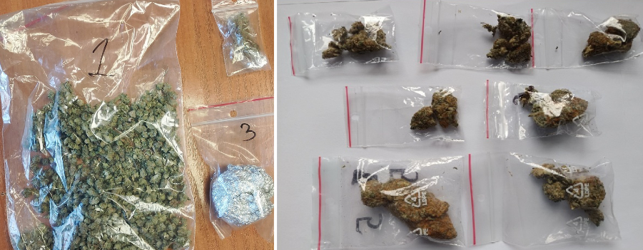 Podczas czynności funkcjonariusze zabezpieczyli marihuanę, metamfetaminę oraz skrystalizowaną substancję psychotropową. Zabezpieczone środki zostały przekazane do badań laboratoryjnych, które potwierdzą ich dokładny skład oraz ilość.