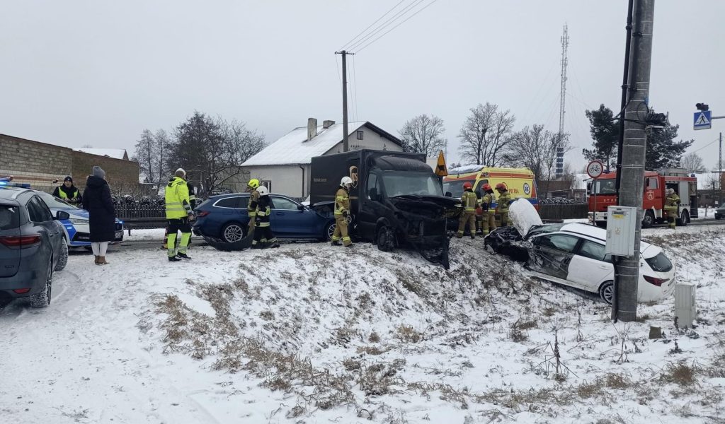 Dzisiaj w godzinach dopołudniowych w miejscowości Główiew doszło do groźnie wyglądającego zdarzenia drogowego, w którym uczestniczyły aż trzy pojazdy. Choć na ten moment nie mamy informacji o osobach ciężko rannych, skutki incydentu są dotkliwe dla wszystkich podróżujących tą trasą. Na miejscu niezwłocznie pojawiły się jednostki policji oraz straży pożarnej, które zabezpieczyły teren i rozpoczęły wyjaśnianie okoliczności zajścia.
